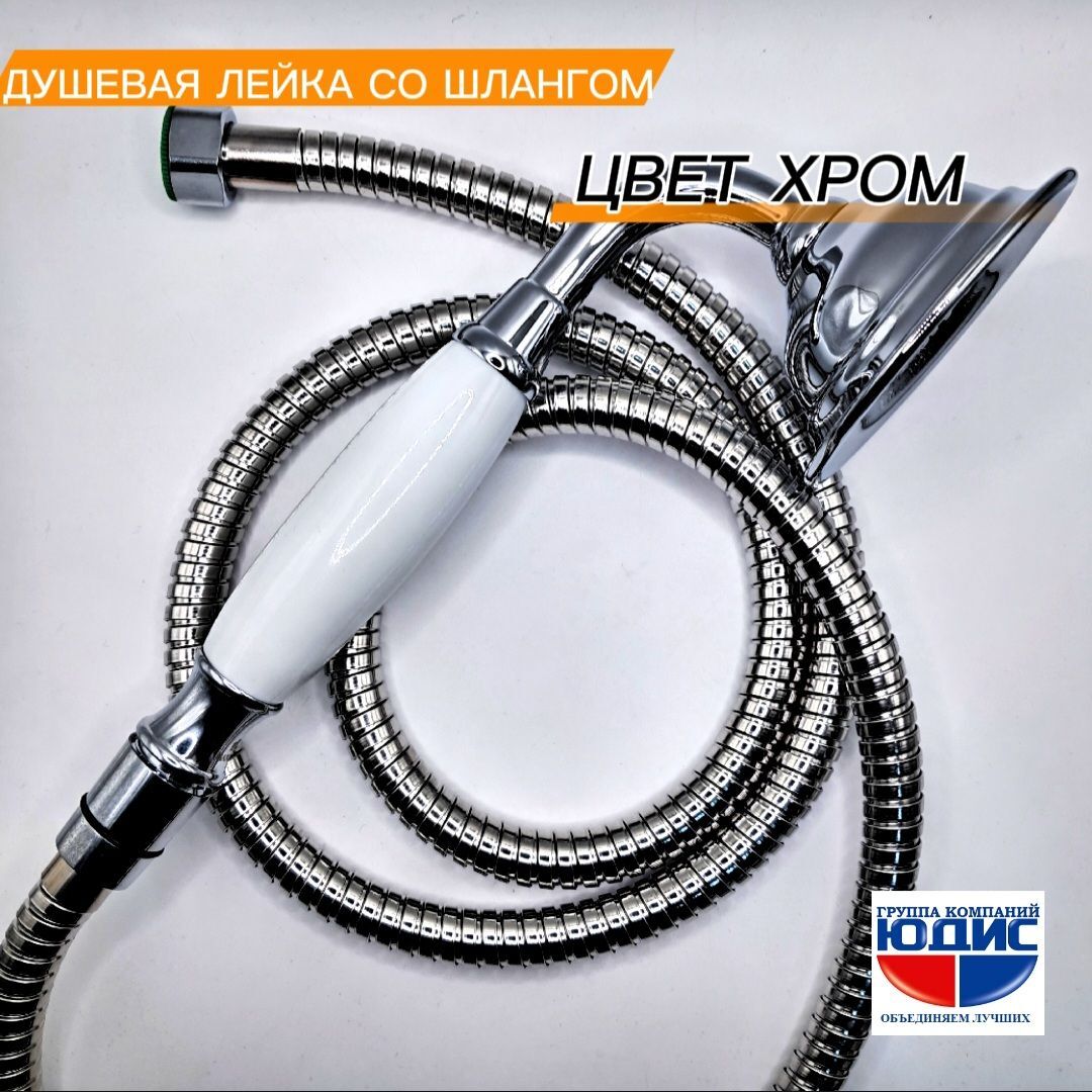 Лейка для душа со шлангом 150см (душевой комплект) РЕТРО, цвет БЕЛЫЙ GK-YUDIS - это стильное и функциональное решение для вашей ванной комнаты.