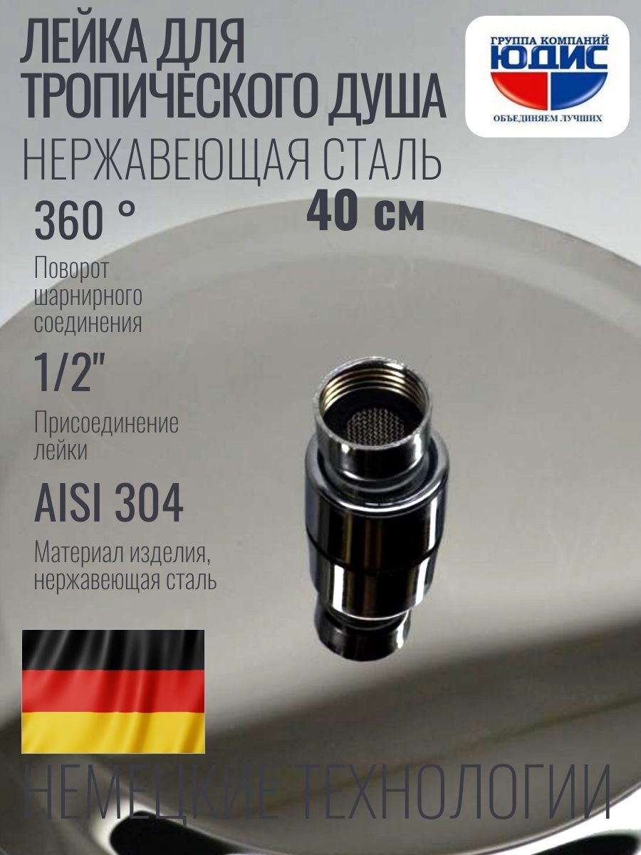 Лейка для тропического душа потолочная из нержавеющей стали 40см круглая хром от ЮДИС - это стильное и функциональное решение для вашей ванной комнаты. Ее качественный материал - нержавеющая сталь - гарантирует долговечность и надежность эксплуатации.