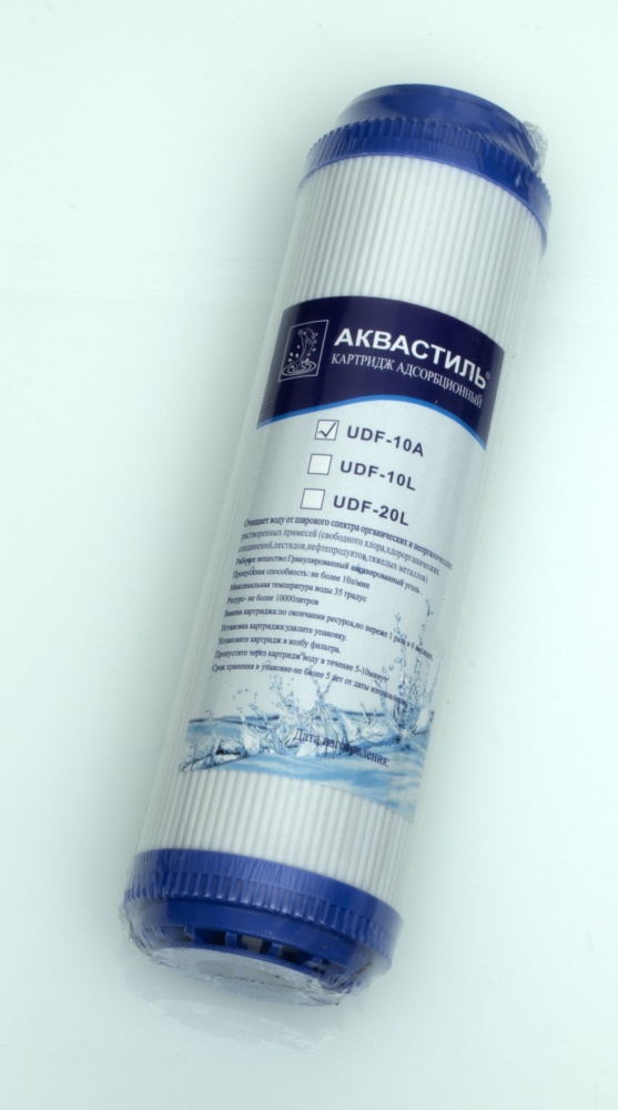 Очищает воду от широкого спектра органических и неорганических растворенных примесей (свободного хлора, нефтепродуктов, хлорорганических сединений, тяжолых металлов)
