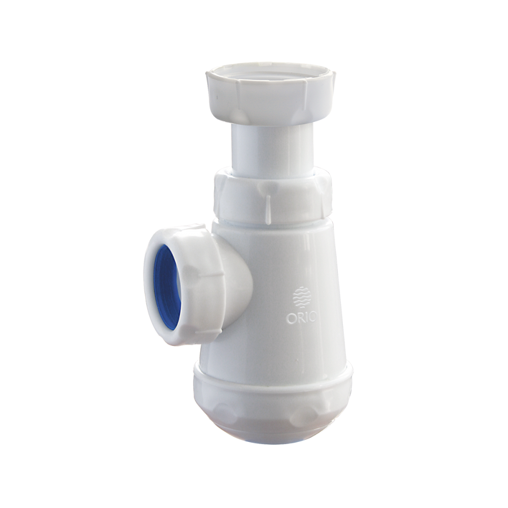 Сифон с мини корпусом и отстойником, без выпуска, для маленьких и угловых умывальников. Идеален в ограниченных пространствах под тумбочками. Необходим выпуск с резьбой 1 1/4" и отвод в канализацию.