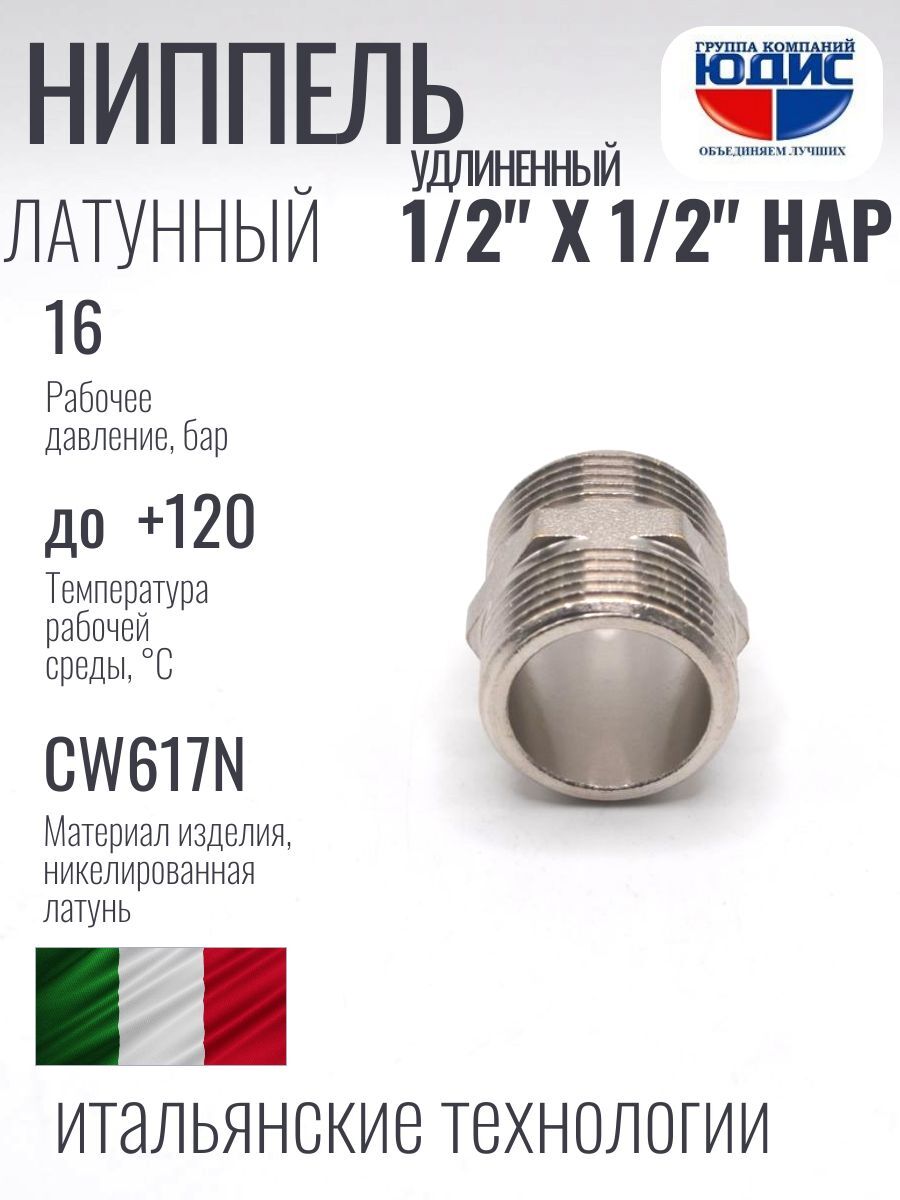 Ниппель имеет стандартный диаметр резьбы, что позволяет использовать его как для медных труб, так и для стальных труб. Максимальное давление, которое может выдерживать этот ниппель, составляет 15 бар, а максимальная рабочая температура - 110 градусов Цельсия.