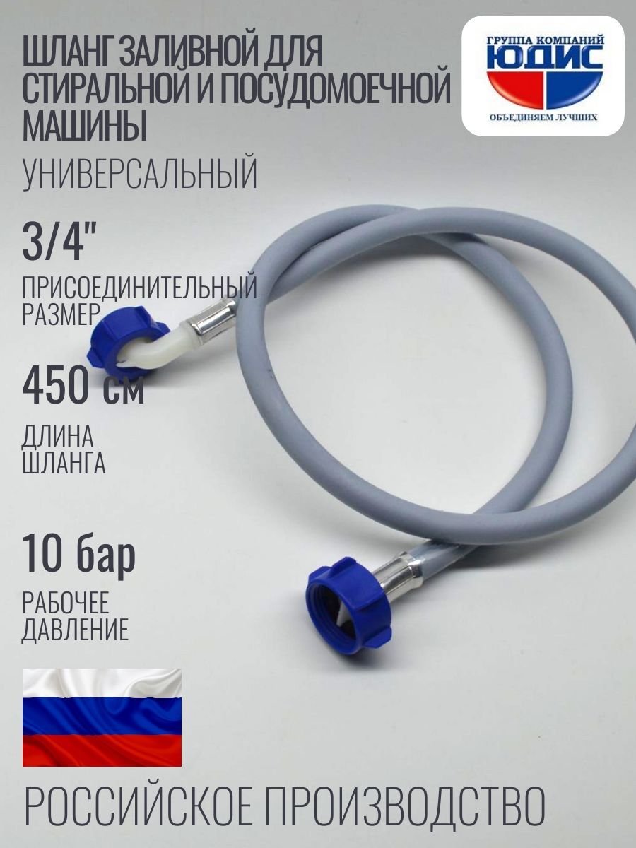 Шланг заливной для стиральной и посудомоечной машины ЮДИС 4,5 м - это надежный помощник в вашем доме. Будьте уверены в качестве и надежности вашего бытового оборудования с этим шлангом.